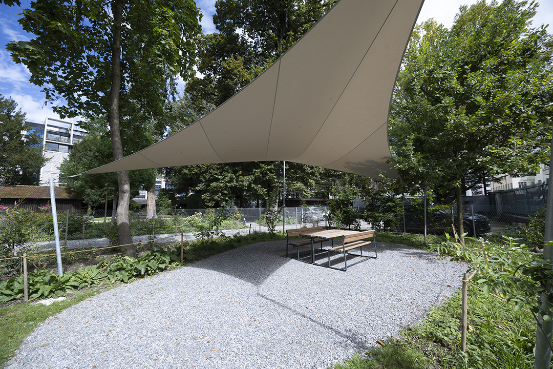 Am Standort Luzern konnte dank grosszügiger Spenden ein vielseitiger Aussenraum realisiert werden, der zum Verweilen, Begegnen und Auftanken einlädt. Die bewusst gestalteten Bereiche tragen unterschiedlichen Bedürfnissen Rechnung.